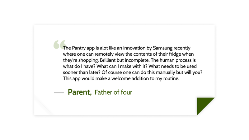 We hoped the Pantry app would help them find suitable recipes to make much quicker, use their ingredients more efficiently, and allow them to allocate more time to other aspects of their lives.
