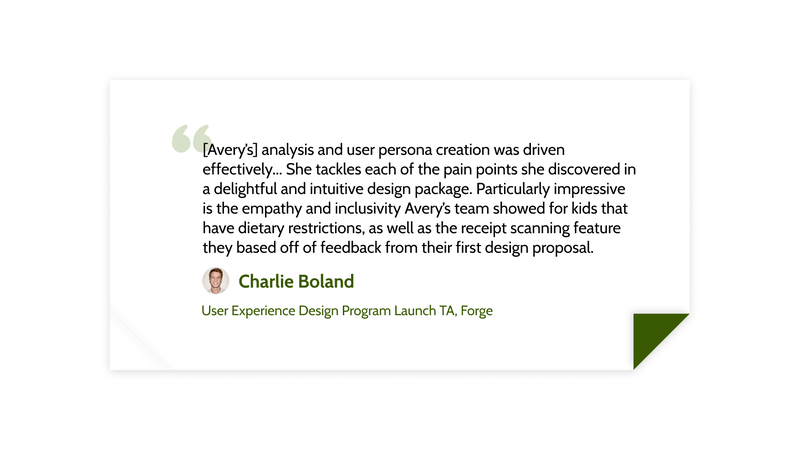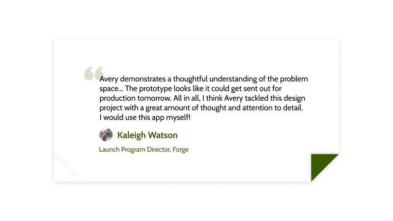 This project is one of many products from my experience at Forge's three-week, full-time UX training program, Launch. Working in designer groups, we tackled various design challenges and presented our work to panels of other UX designers. I contributed significantly to the interviewing, ideation, and design portions.